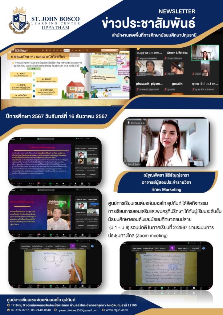 การเรียนการสอนเสริมและพบครูที่ปรึกษา ให้กับผู้เรียนระดับชั้นมัธยมศึกษาตอนต้นและมัธยมศึกษาตอนปลาย (ม.1 – ม.6) รอบปกติ ในภาคเรียนที่ 2/2567 ผ่านระบบการประชุมทางไกล (Zoom meeting)