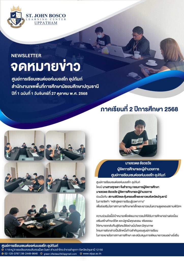 วันจันทร์ที่ 27 ตุลาคม 2568 ศูนย์การเรียนเซนต์ยอห์นบอสโก อุปถัมภ์ ร่วมมือกับ สถานพินิจและคุ้มครองเด็กและเยาวชนจังหวัดปทุมธานีในการจัดทำ “หลักสูตรการเรียนรู้เฉพาะทาง”